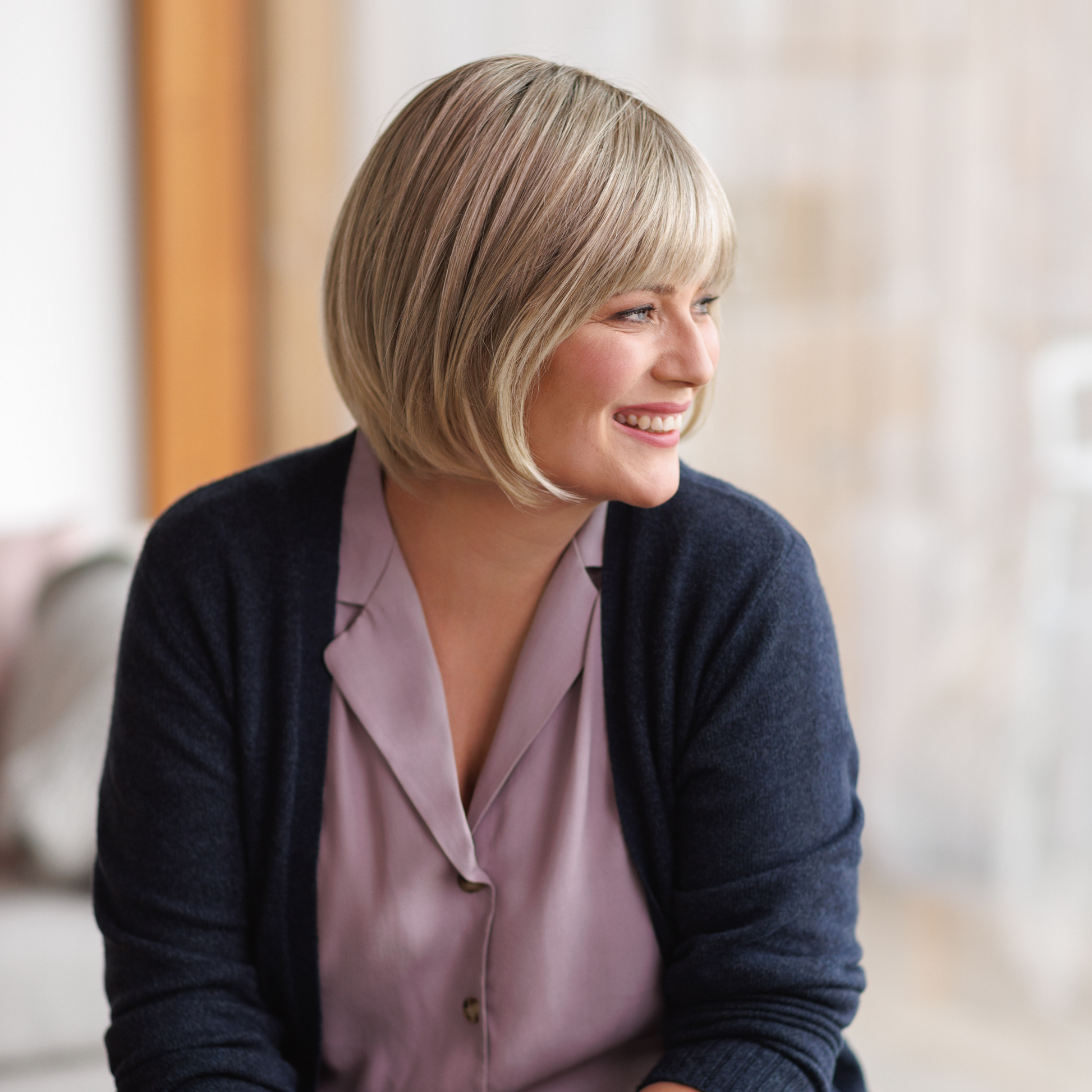 The Aster wig by Sentoo is a beautifully rounded modern bob with a soft fringe that can be worn forward as a full fringe or swept off a little to the side if you prefer a softer look.