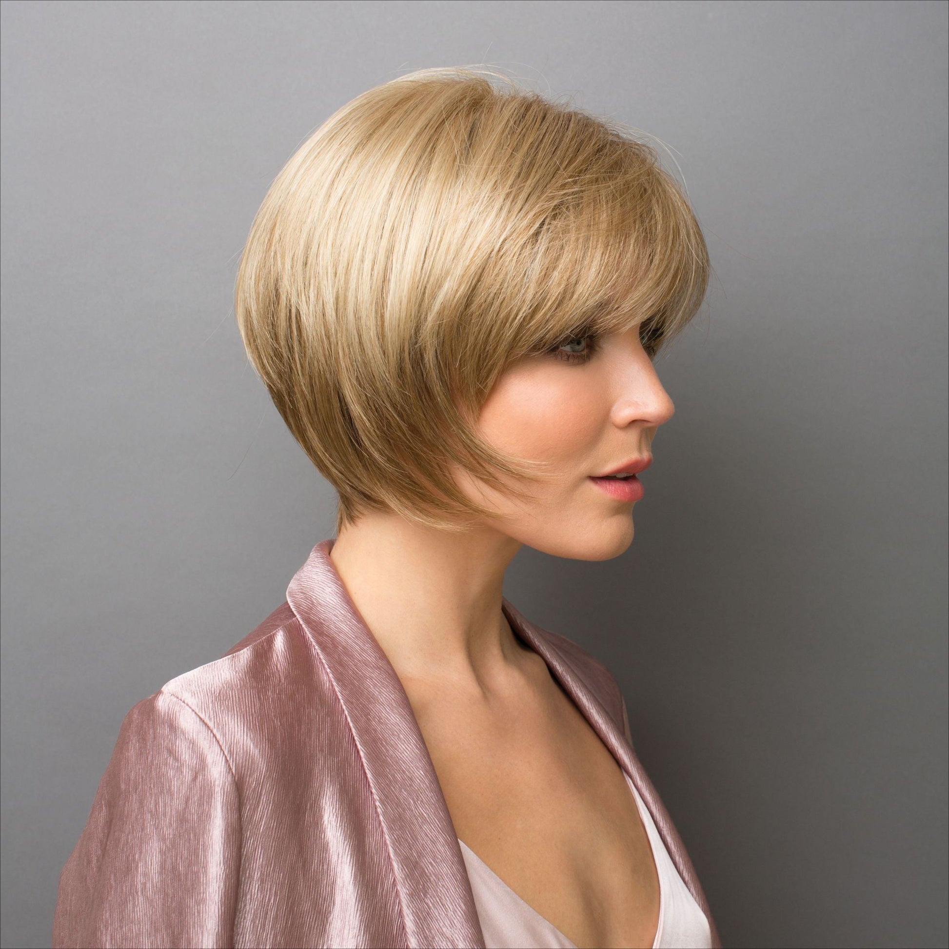 The Audrey wig by Hi Fashion is a smooth layered bob with a side swept fringe and angled sides.