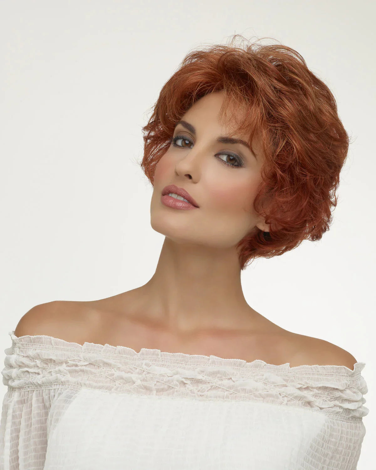Bryn is a classic short curled style with layers throughout that creates volume and lift. The extended nape hugs along the neck perfectly. With the stretch open cap (capless) construction Bryn is lightweight, cool and comfortable.