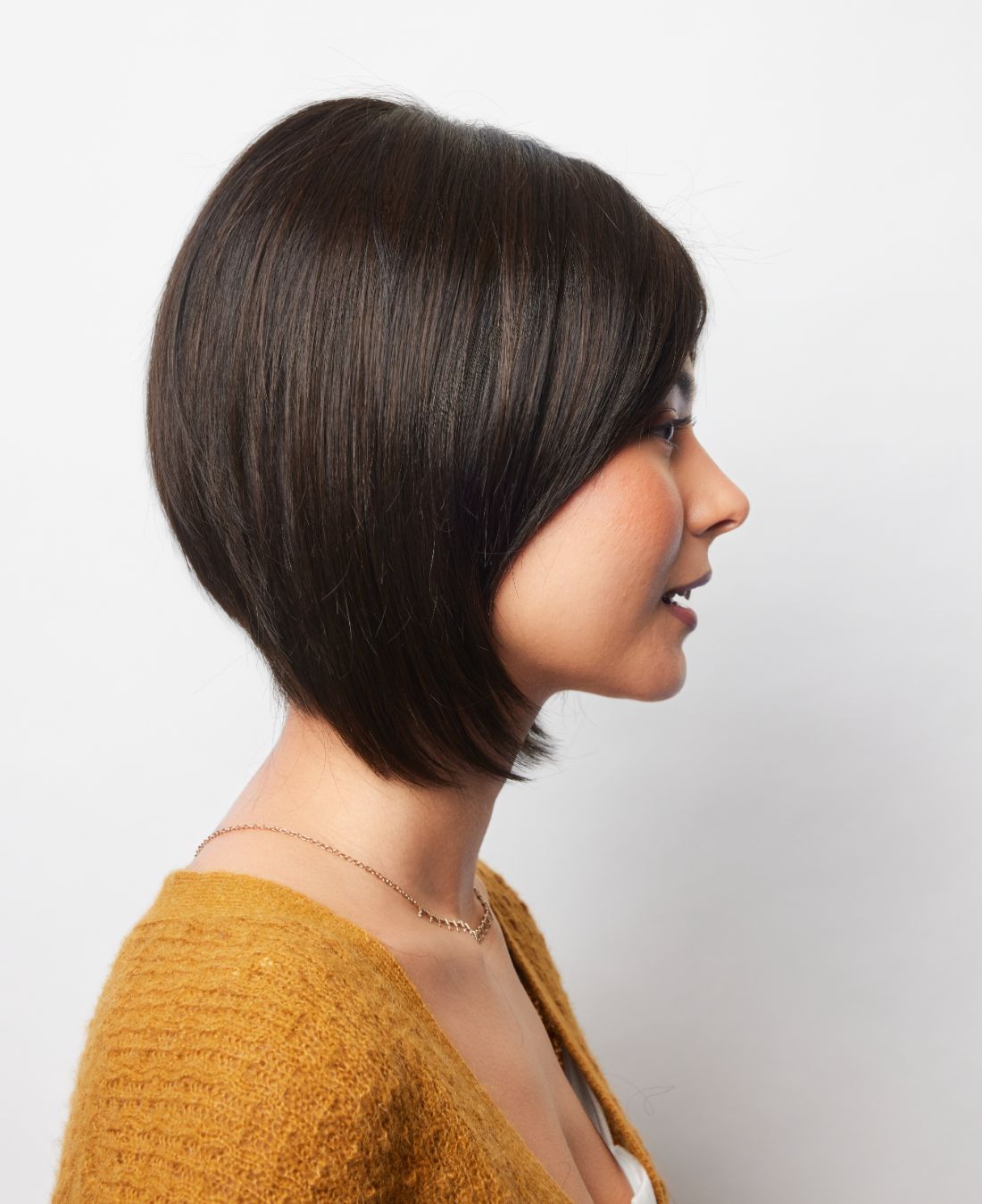 Elegant angled bob with side-swept fringe – A flattering, modern style that frames the face beautifully.