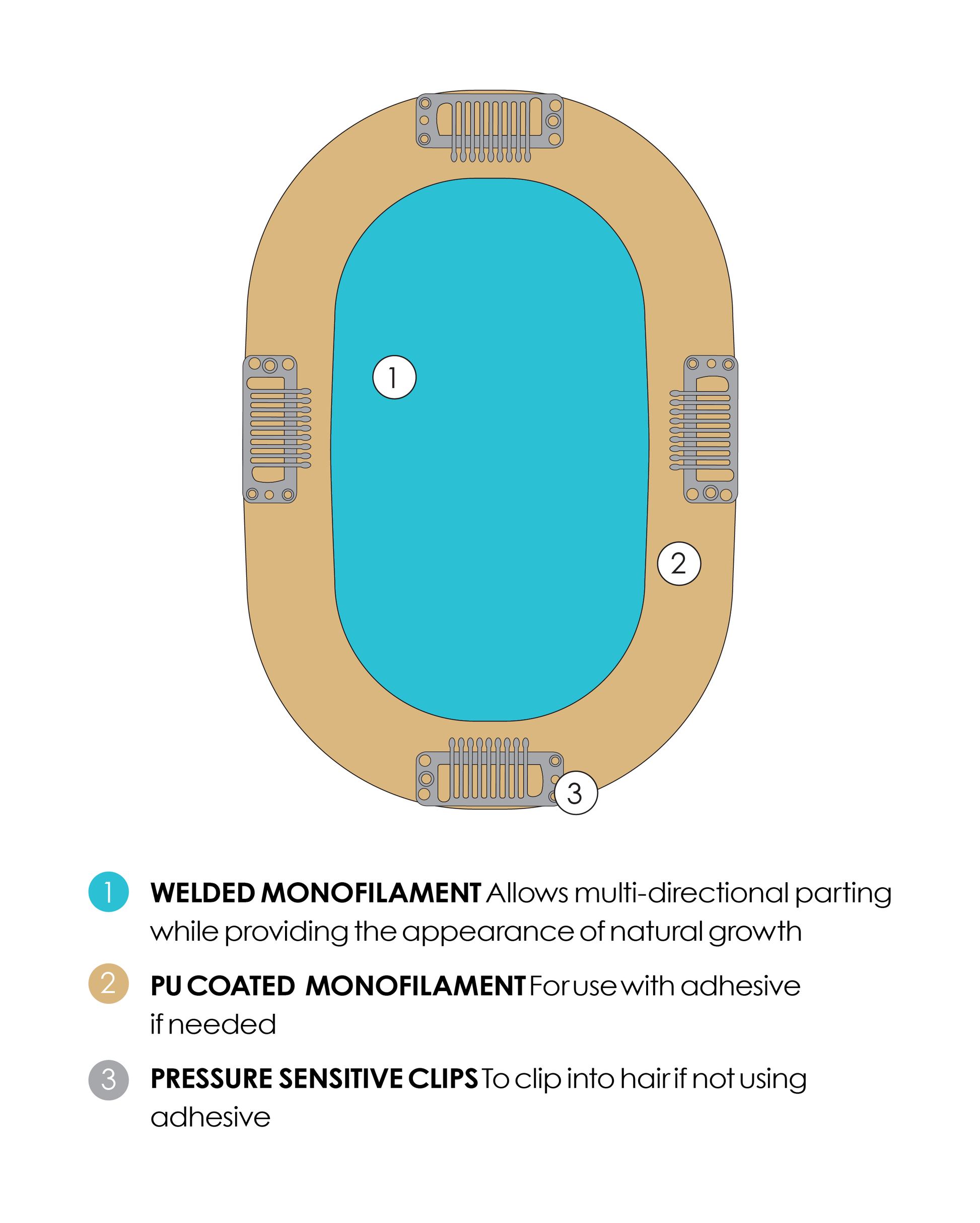 This topper features clips, has more density, a wider base for more all-over coverage, and larger polyurethane perimeter allowing easier application of Tape or adhesive. Available in 12- and 18-inch lengths.
