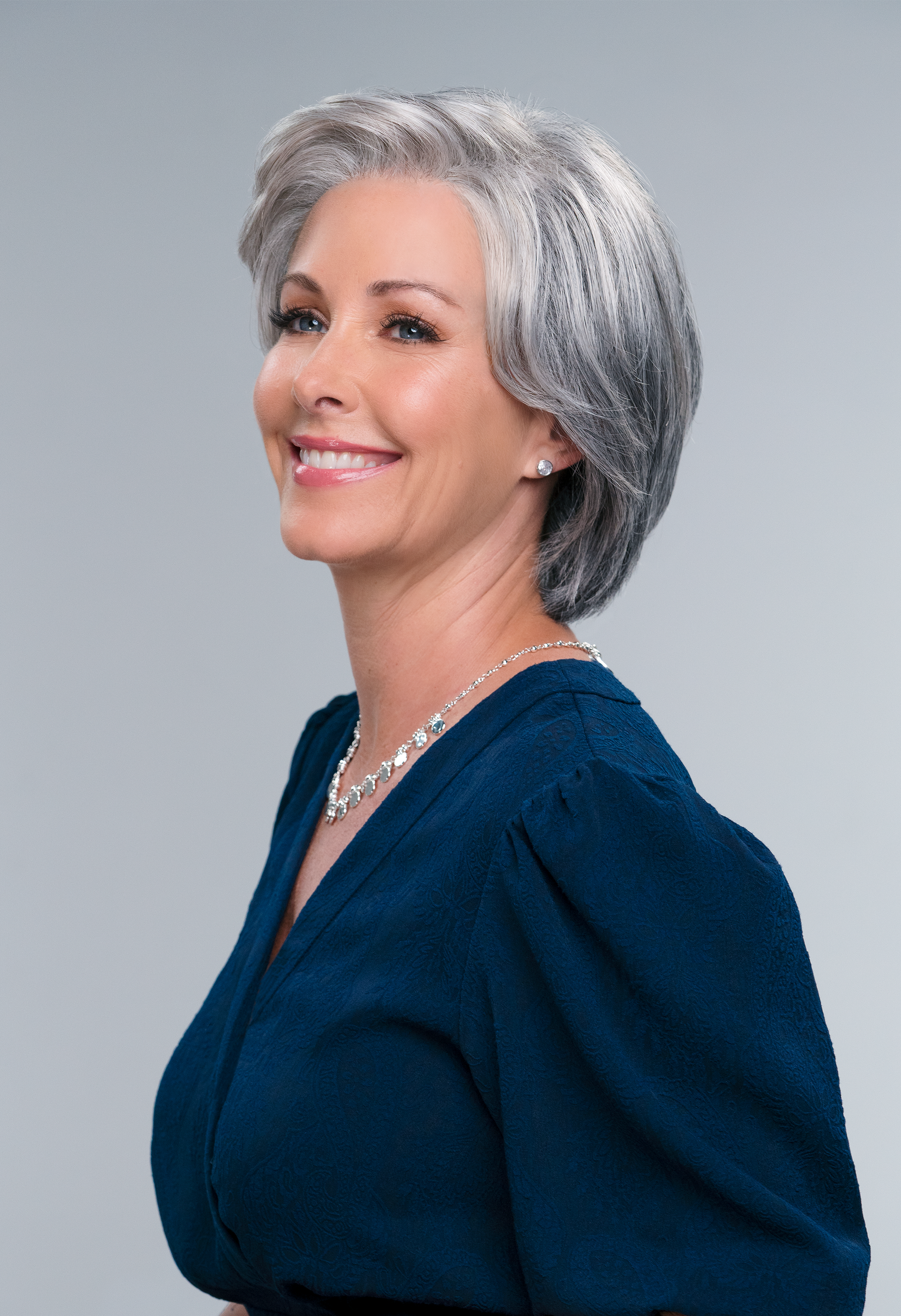 The Hillary wig by Jon Renau is a classic short cut that includes long delicate layers on top and sides. She is on a open cap with a stunning lace front.