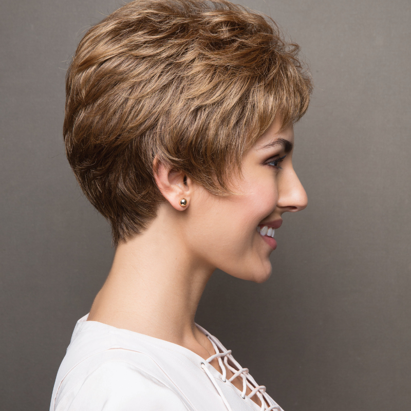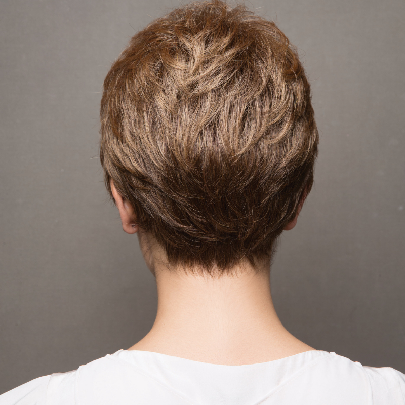 The Pam wig by Noriko is a basic short cut with feathered layers.