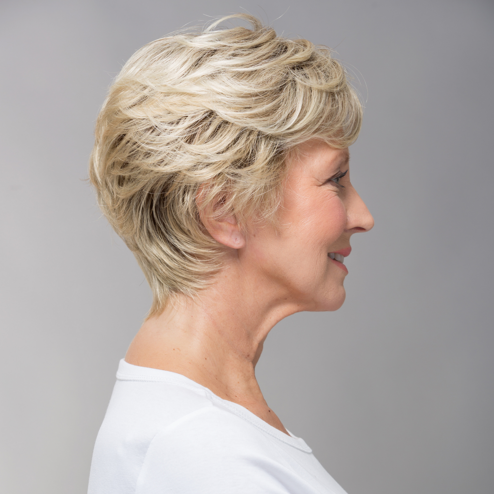 The Peony wig by Sentoo is a soft and textured shorter length style with gentle flicks that can be ruffled out or smoother down for a more soft look.