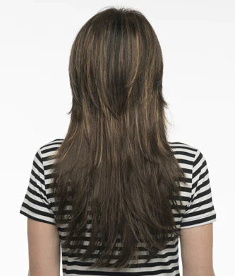 The full hand-tied monofilament top allows you the change the part giving you styling options. The lace front is pre-cut and ready-to-wear. The side fringe can be worn away from the face or can be cut by your hairdresser. The hair is super straight with textured ends, which add a modern appeal. Achieve salon worthy locks in seconds with this long layered cut!