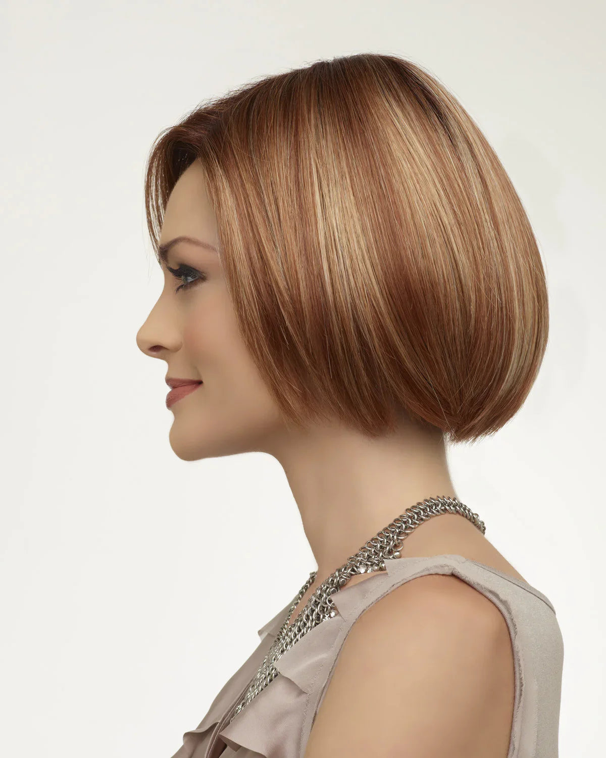 Tasha is a 100% hand-tied short page style bob. Tasha has beautifully textured soft layers throughout blend seamlessly into a long side swept bang which creates bounce and weightless volume.