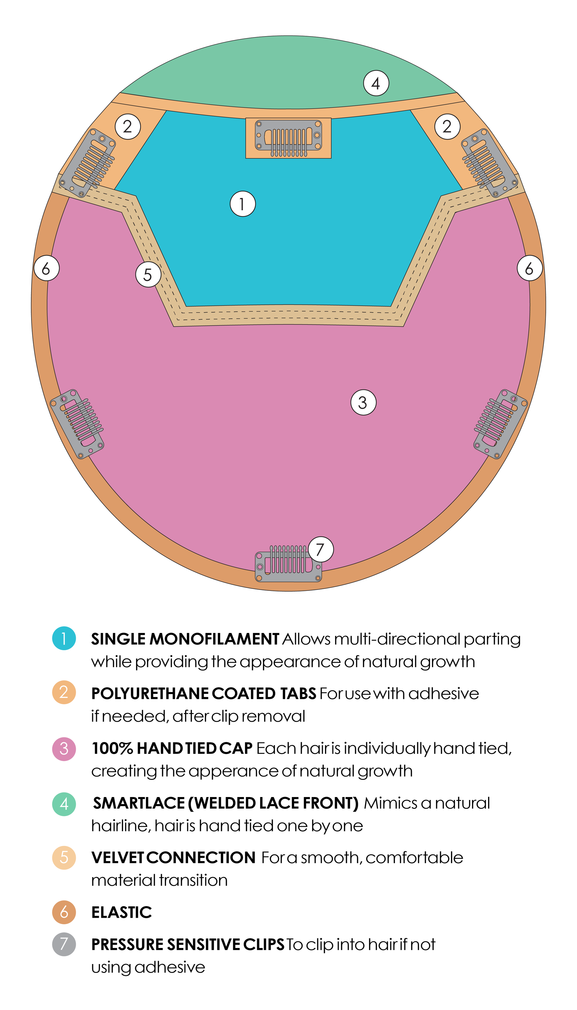 Construction - Lace Front / Single Monofilament/ Hand Tied